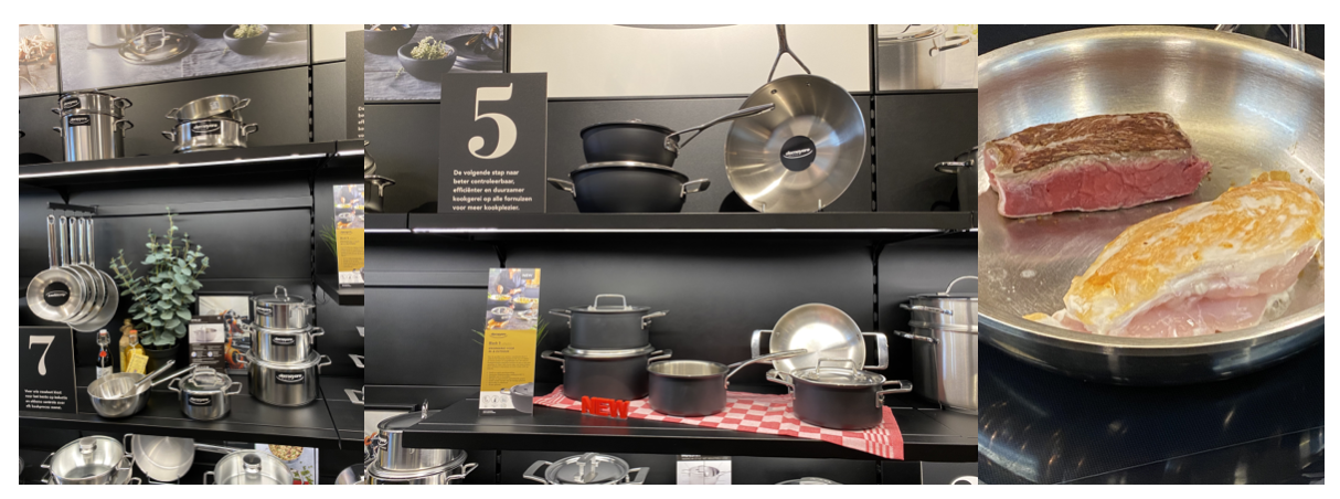 Het bakken in een roestvrij stalen pan kan in het begin even wennen zijn. Wij adviseren u graag in onze winkel. Vandaag hebben we bij Demeyere ook een workshop mogen volgen betreffende het bakken in een roestvrijstalen pan. Zo kregen we te zien hoe er gemakkelijk een spiegeleitje gebakken kan worden met boter, maar ook een stukje kip of vlees zonder boter. Alles kan in een stalen pan! De temperatuur is erg belangrijk bij het bakken in staal, goed opwarmen en optijd terugschakelen. De pannen van Demeyere zijn zo ontworpen dat zij de juiste temperatuur even vasthouden. Minder energie gebruiken dus voor een geweldig resultaat!