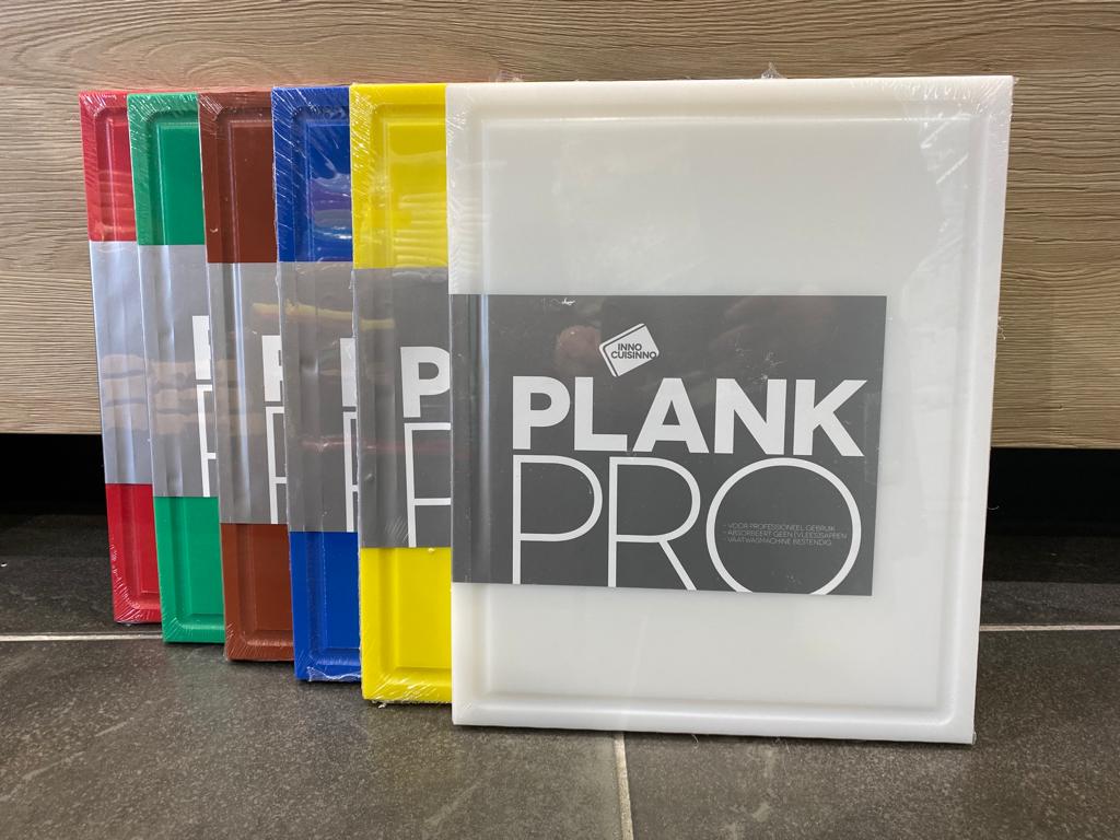 Deze professionele snijplank 'Pro' van Inno Cuisinno is geschikt voor veelvuldig, intensief gebruik en wordt daarom ook veel in de horeca gebruikt. De snijplank kan aan beide kanten gebruikt worden, één kant heeft een handige sapgoot die eventueel vocht opvangt. Deze snijplank is verkijgbaar in de bekende horecakleuren - voor elk ingrediënt een eigen plank (groen=groente en fruit) zodat kruisbesmetting wordt voorkomen. De snijplank is gemaakt van recyclebaar hoogmoleculair polyethyleen, absorbeert geen (vlees-)sappen en is bovendien magnetronbestendig. Na gebruik mag de snijplank in de vaatwasmachine.