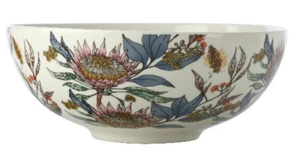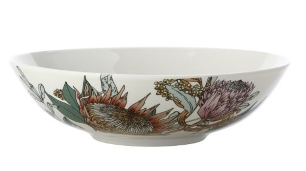 Waratah kom 18.5 cm. De kom is in de binnenkant 'gewoon' wit en heeft aan de buitenkant een mooie print. Deze kom / schaal is wat lager dan het andere kommetje in deze collectie. Gebruik de kom voor het serveren van een bijgerecht of een lekkere salade. Met een inhoud van 800 ml is hij een echte alleskunner.