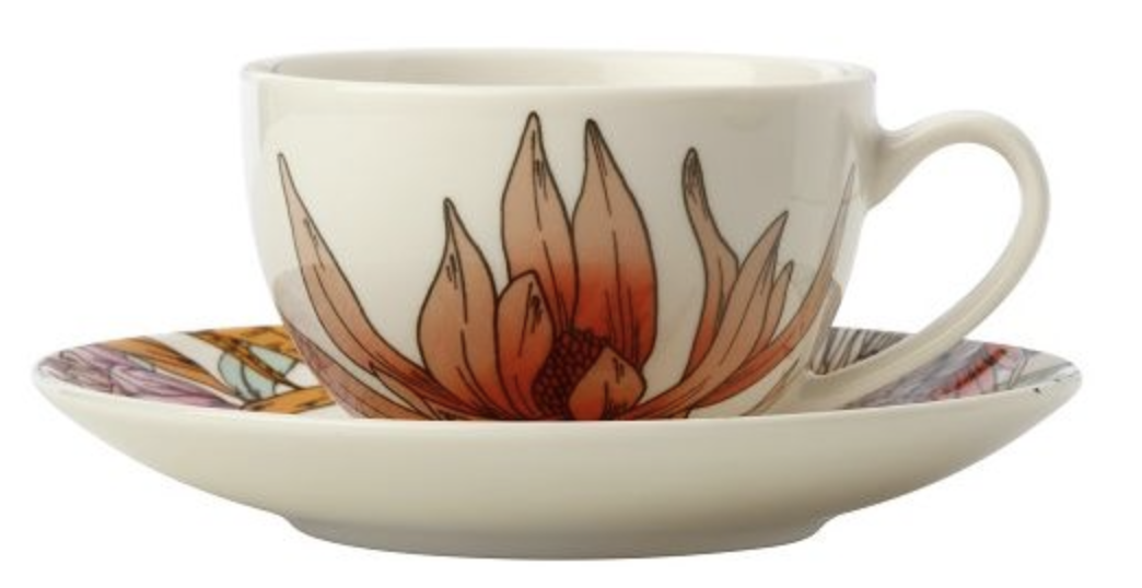 Waratah kop en schotel 200 ml. De kop en schotel zijn beiden voorzien van de Waratah bloem. Dit is de meest gekozen maat in de kop en schotel serie. Geniet van een lekker kopje koffie in dit prachtige servies.