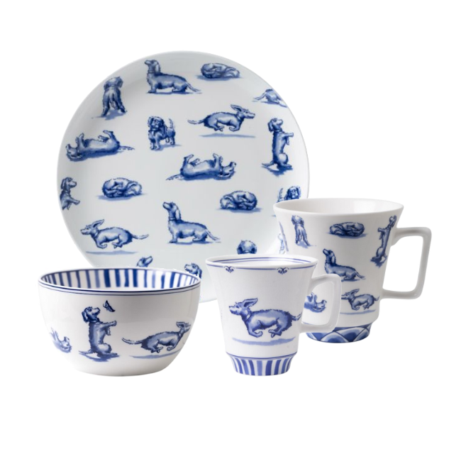 Delfts Blauw Ontbijtset Teckel Nhaan 4-delig