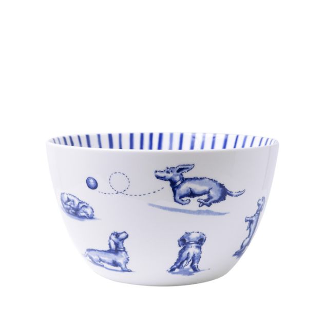 Van deze porseleinen soepkom word je gegarandeerd vrolijk. De speelse teckel rent, springt, tuimelt en rolt om de soepkom heen. Dit is het Sharing Moments servies van Janny van der Heijden. Bekend als presentatrice van Heel Holland Bakt en een verzamelaar van Delfts blauw.Nhaan is de harige teckel van koningin van de keuken, Janny van der Heijden. Deze aandoenlijke diva op vier pootjes verovert in een rap tempo de harten van vele Nederlanders. Naast een eigen Instagram-account, covershoots voor magazines en tv-rolletjes in kookprogramma’s heeft dit vrolijke hondje nu ook haar eigen Delfts blauw servies waarop zijzelf de hoofdrol speelt. De meesterschilder van Heinen Delfts Blauw heeft dit karakteristieke hondje tot in detail nageschilderd en laat haar vrolijk spelen op borden, kommen en theekopjes. Het Nhaan servies sluit ook nog eens naadloos aan op de eerder uitgebrachte collecties van het Sharing Moments servies.