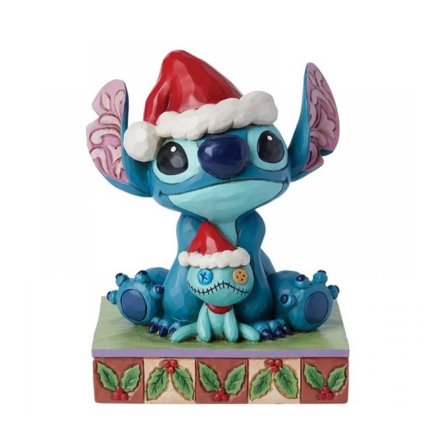 Stitch en zijn kleine vriend Scrump zijn helemaal klaar voor de Kerstman met hun feestelijke hoedjes. De perfecte aanvulling op elk kerstdisplay van Disney Traditions