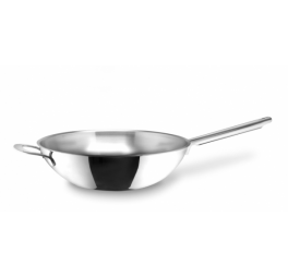 Deze roestvrijstalen wokk is vervaardigd van het zeer duurzame meerlagenmateriaal 'Triply' (18/10 - alu - 18/0). Door de ronde vorm met doorlopende bodem en de samenstelling van het materiaal ontstaat een perfecte warmteverdeling en een snellere opwarming van uw gerechten.