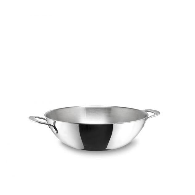 Deze roestvrijstalen wokken zijn vervaardigd van het zeer duurzame meerlagenmateriaal 'Triply' (18/10 - alu - 18/0). Door de ronde vorm met doorlopende bodem en de samenstelling van het materiaal ontstaat een perfecte warmteverdeling en een snellere opwarming van uw gerechten. Ook blijven uw gerechten langer warm in deze wok. Bovendien heeft dit materiaal een energiebesparend effect. De wok is geschikt voor alle warmtebronnen incl. induktie, vaatwasmachinebestendig en ovenvast.