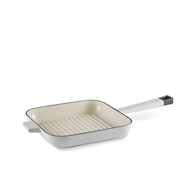 Dit is de grillpan Baron van Habonne in wit gietijzer. In ambachtelijk gegoten gietijzeren pannen bereid je de lekkerste gerechten. Gietijzer is oersterk en kan tegen hoge temperaturen. De grillpan is op hoog vuur goed te gebruiken om vlees, vis, groente, fruit, brood of zelfs kaas te grillen. Bovendien houdt het de warmte goed vast, zodat jouw gerecht perfect gaart. De ribbels zorgen voor het beste schroei effect om gerechten aan te braden, te bakken en te karamelliseren. Na gebruik kan de grillpan worden gereinigd in de vaatwasmachine. Vanwege het gewicht van de pan, raden wij aan de pan met de hand af te wassen. Ook zin om de lekkerste steak, malse sate, een mooi stuk zalm, delicate groente te grillen? Kies dan voor deze witte grillpan van Habonne, geschikt voor alle warmtebronnen.
