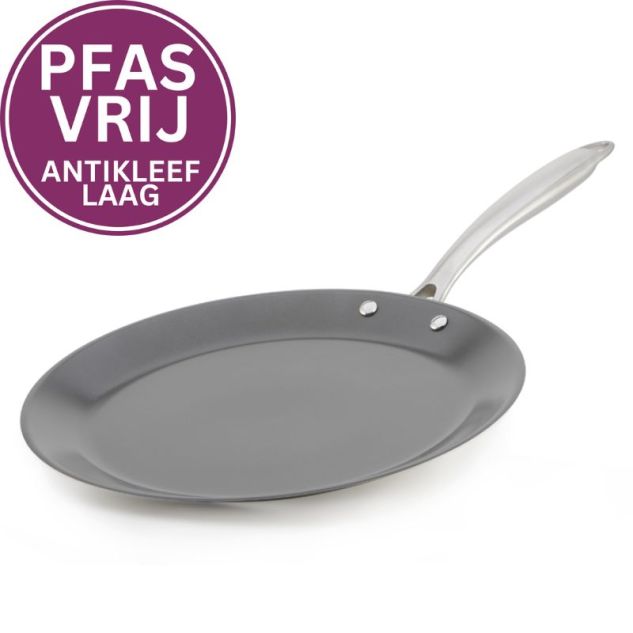 Een pannenkoekenpan is een absolute must have voor de pannenkoeken liefhebber. Wat de pannenkoekenpan uniek maakt is de lage rand waardoor de pannenkoek eenvoudig is te keren. De allerbeste roestvrijstalen pannenkoekenpan met keramische coating; absoluut PFAS-vrij. De roestvrijstalen koekenpannen, crepespan, chefspan en wok zijn voorzien van de extreem harde keramische Greblon CK2 coating. In al deze pannen krijg je een perfect bakresultaat met minder olie of boter. De etensresten komen gemakkelijk los en je pan is in een handomdraai weer schoon. Na gebruik de pan direct schoonmaken met een sponsje (grove zijde) en afwasmiddel!