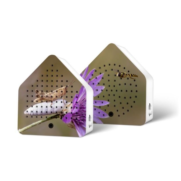 Met de Zirpybox in de buurt voel je je midden in de natuur op een zomerse dag. Deze set bestaat uit twee boxjes: eentje met de geluiden van tjirpende krekels en de andere met sprinkhanen. Boxjes zijn samen of apart te gebruiken en werken met bewegingssensor.