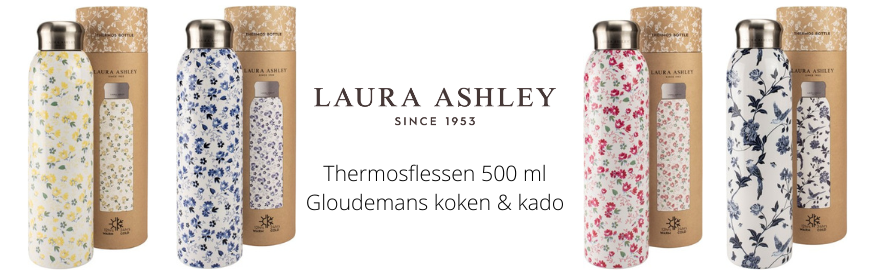 Dit zijn de nieuwe Laura Ashley thermosflessen uit de 'on the go collectables' serie.
