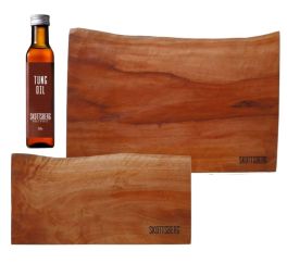 Longan is een fruitboom die, wanneer hij geen fruit meer geeft, normaliter enkel nog als brandhout dient. In plaats daarvan maakt Skottsberg er mooie serveerplanken van. Deze zijn uit een stuk gezaagd, niet verlijmd en daardoor oersterk. De planken zijn aan 2 kanten te gebruiken en hebben 2 hygiënische in gefreesde handgrepen. De zagerij heeft de plank al voorzien van 2 lagen Tung olie. Deze drogende, beschermende olie is volledig foodsafe en maakt de planken waterafstotend. Skottsberg Tung olie is ook los verkrijgbaar zodat je de plank goed kunt onderhouden voor een leven lang plezier. Als premium verkooppunt van het merk Skottsberg hebben wij de complete serveerplanken collectie op voorraad. Welke planken zitten er dan in deze collectie? Hierbij een overzicht: