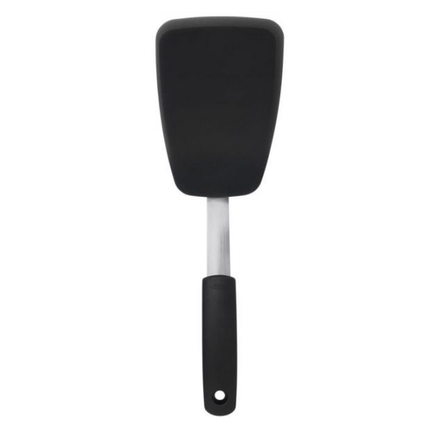 Deze spatel van OXO Good Grip is extra flexibel en heeft een dunne, flexibel rand die gemakkelijk onder voedsel glijden. Dit maakt de spatel perfect voor het draaien van visfiles, eieren, pannenkoeken, hamburgers en meer. De spatel heeft een siliconen buitenlaag, deze is hittebestendig tot maar liefst 300ºC en veilig voor anti-kleef kookgerei. De kern is gemaakt van flexibel roestvrijstaal voor stabiliteit en gebruiksgemak. Zo combineert deze spatel de voordelen van siliconen met de kracht van roestvrijstaal. De comfortabele anti-slip handgreep biedt een stevige greep, zelfs wanneer je handen nat zijn. De greep is bovendien voorzien van een praktisch ophangoog. Na gebruik mag de spatel in de vaatwasmachine.