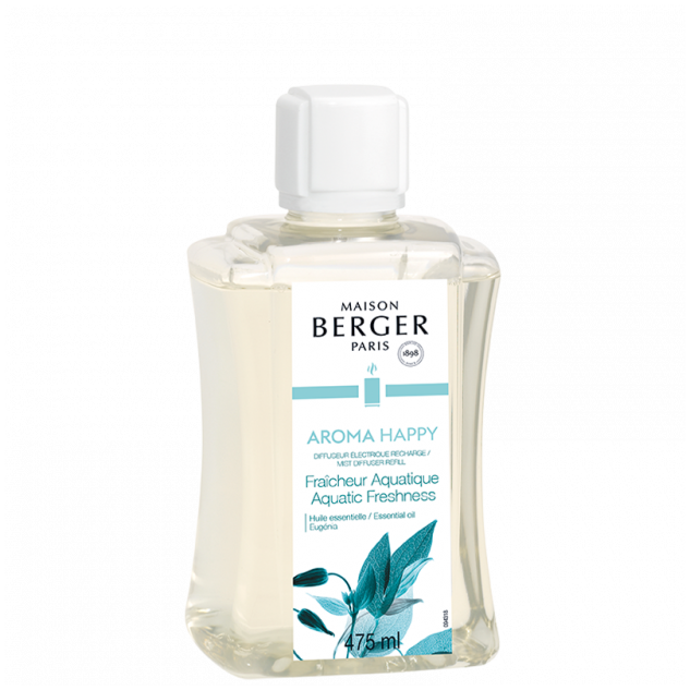 De Navulling Mist Diffuser 475ml Aroma Happy is kant-en-klaar en ready-to-use wat wil zeggen dat u geen water of essentiële oliën meer hoeft toe te voegen om (kalk)aanslag te voorkomen! De navullingen voor de Mist Diffuser kunnen enkel en alleen gebruikt worden in combinatie met de Mist Diffuser van Maison Berger Paris.