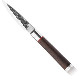 De Sebra serie van Forged is een opvallende verschijning binnen het merk. Deze serie onderscheidt zich op een aangename manier door de donkere houtsoort die is gekozen voor het vervaardigen van het heft. Dit prachtige donkere hout dat afkomstig is uit Afrika luistert naar de naam Dalbergia melanoxylon (dit is niet echt een voor de hand liggende naam voor een nieuwe messenserie). De Afrikaanse vertaling hiervan is Sebra en daarmee ook de naam van deze serie: Sebra Forged. Het donkerhouten heft straalt warmte uit, noem het chique. En het is juist deze uitstraling, die samen met het gehamerde lemmet (wat kenmerkend is voor Forged) en het subtiele rode detail bij de krop van deze serie echt iets bijzonders maakt. Kortom, met Forged Sebra haal je een stoere en uiterst stijlvolle messenserie in huis die gezien mag worden.