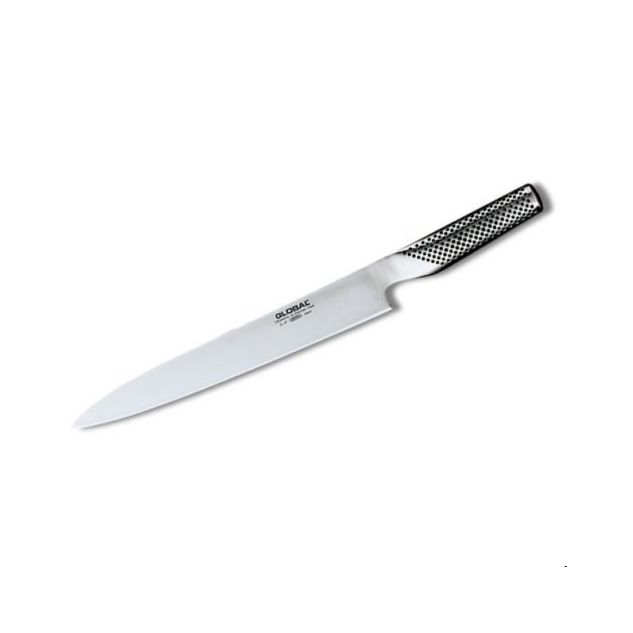 Met het Global G47 trancheermes wordt het een koud kunstje om mooie stukken vlees te snijden. Door het relatief smalle en dunne lemmet kun je heel nauwkeurig snijden. Het lemmet van de Global G47 is vervaardigd uit Cromova 18 staal en wordt vlijmscherp afgeleverd.
