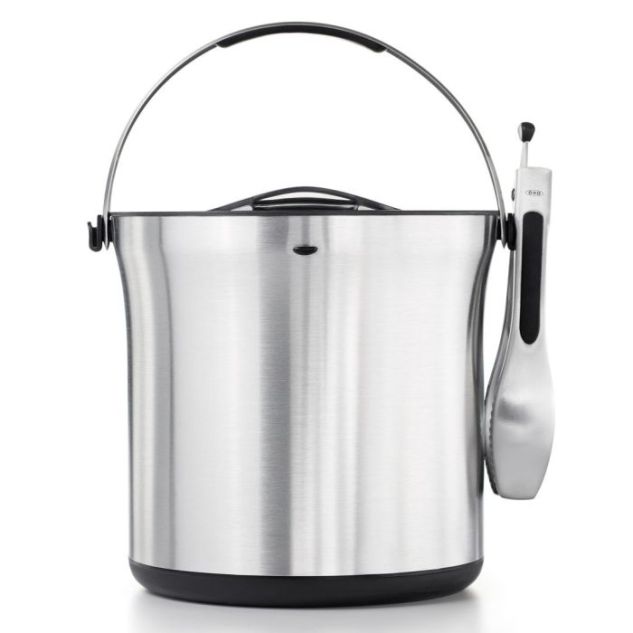 Of je nu gekoelde limonade of stijlvolle cocktails serveert, verse ijsblokjes zijn onmisbaar. Houd ze bij de hand met deze OXO SteeL IJsemmer met tang. De emmer heeft een dubbelwandige constructie, waardoor het binnenin lekker koud blijft en er geen condens aan de buitenkant kan ontstaan. De emmer heeft ook diepe gleuven op de bodem om smelwater op te vangen en zo de ijsblokjes uit het smeltwater te houden. Het doorzichtige flip-top deksel zorgt voor toegang met één hand en een veilige sluiting, terwijl een anti-slip basis het geheel op zijn plaats houdt. De set wordt geleverd met vergrendelbare tang, die aan de zijkanten van de emmer bevestigd kan worden en scherpe tanden heeft om gemakkelijk ijsblokjes te pakken.