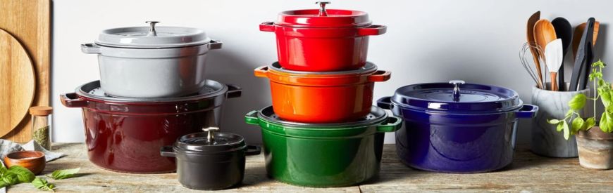 De geëmailleerde gietijzeren braadpannen van Staub zijn van topkwaliteit. De Staub braadpan onderscheid zich van andere braadpannen door de innovatieve deksel die zij ontworpen hebben. Gloudemans koken & kado heeft ook de speciale braadpannen in zijn assortiment zoals de tomaat of de pompoen.