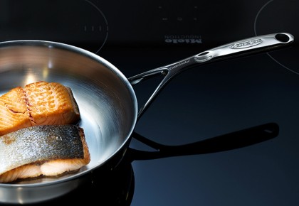 Zoals al eerder aangegeven ontwikkelen inductiefornuizen in korte tijd een zeer intensieve warmte. Om de ideale baktemperatuur te behouden, ontwikkelde Demeyere bak-/koekenpannen met ControlInduc, een uniek veiligheidssysteem dat de maximale temperatuur van de pan beperkt tot 250°C op inductiefornuizen. Tot aan +/- 220 °C zal de koekenpan met ControlInduc normaal opwarmen zoals elke andere pan, maar boven die temperatuur zal de kracht van de inductoren geleidelijk aan afnemen om zich te stabiliseren tussen de 245 en 250°C. Wanneer je dan weer voedsel in de koekenpan legt zal de pan afkoelen en wordt automatisch de kracht van de inductoren weer opgedreven.