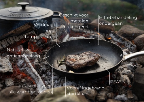 Puur! Echt! Natuur! Wildernis! Je hebt net met je blote handen een zwijn gevangen, gevild en een mooi stukje ervan in je pan gelegd. Want dat heb je, een pan. En wat voor pan. Een gietijzeren pan. Meer heb je niet. Je leven is teruggebracht tot de essentie: net zo lang waden door de rivier tot je een vis in je handen hebt. Dat is overleven. Jij en je pan. Je bent een jager-verzamelaar, maar dan met een puike pan. De Skottsberg lichtgewicht gietijzeren pannen zijn er in de volgende maten: