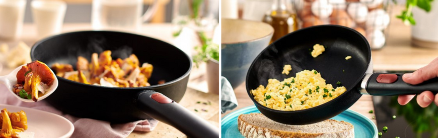 De steel van de pan is afneembaar en gemaakt van 50% herbruikbare materialen, dit zorgt er voor dat de pan ook in de oven gebruikt kan worden.