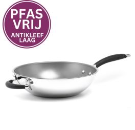 De allerbeste roestvrijstalen koekenpan met keramische coating; absoluut PFAS-vrij. De roestvrijstalen koekenpannen, crepespan, chefspan en wok zijn voorzien van de extreem harde keramische Greblon CK2 coating. In al deze bakpannen krijg je een perfect bakresultaat met minder olie of boter. De etensresten komen gemakkelijk los en je pan is in een handomdraai weer schoon. Na gebruik de pan direct schoonmaken met een sponsje (grove zijde) en afwasmiddel!