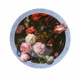 Heinen Delfts Blauw Wandbord Bloemen van de Gouden Eeuw 26.5 cm- Voor 15:00 besteld vandaag verzonden
