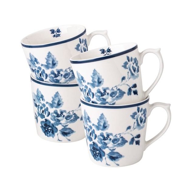 Deze 4 delige mokken set hoort bij de Blueprint Collectables lijn van Laura Ashley. Blueprint Collectables zijn gebaseerd op de eerste prints die Laura Ashley begin jaren 50 maakte. De blauw-witte prints maken het servies tijdloos.