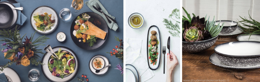 Dit zijn de ovale onderdelen van het Caviar Granite servies.