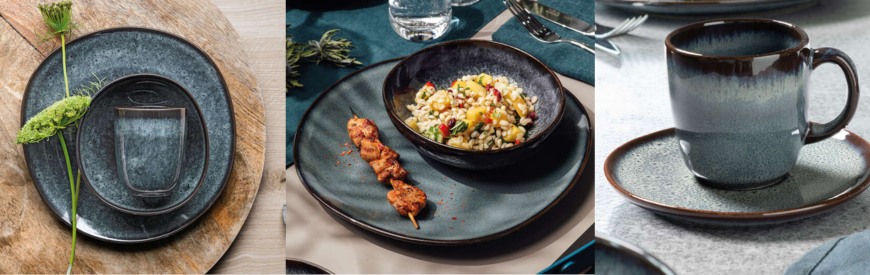 Dit is het grijs/blauwe servies uit de Lave collectie van Villeroy & Boch.