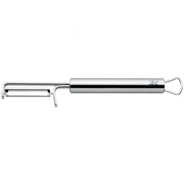 Het zeer scherpe gekartelde lemmet schilt moeiteloos alle groente- en fruitsoorten. Voor linkshandigen kan het lemmet gewoon andersom worden gedraaid.