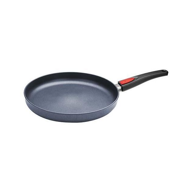 Een koekenpan 30 cm is altijd al een redelijk zware pan, dat kan je zeker ook zeggen van de Woll koekenpannen. Ze zijn daardoor wel geweldig voor op inductie! De Woll koekenpannen zijn gegoten aluminium pannen met een unieke Diamond non-stick coating. De antiaanbaklaag is geheel PFOA-vrij. De pan heeft een 8 mm dikke bodem voor maximaal warmtebehoud; ook bij zeer hoge temperaturen! Het afneembare handvat zorgt ervoor dat de koekenpan gemakkelijk op te bergen is, wat ook ideaal is bij gebruik van de pan in de oven. Zo bak je bijvoorbeeld een biefstukje even kort aan en laat je hem afgaren in de oven. Of gebruik de koekenpan als lage ovenschaal!